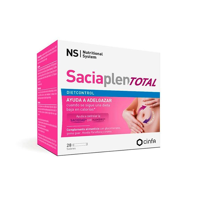 La Saciaplen Total es un complemento alimenticio en forma de sobres, diseñado para ayudar a controlar el apetito. Se recomienda tomar un sobre dos veces al día, media hora antes de las comidas principales, disolviéndolo en un vaso de agua (200 ml) y consumiéndolo inmediatamente. A continuación, se sugiere beber abundante agua para asegurar que el producto llegue al estómago.